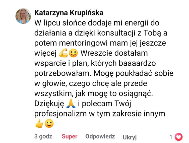 Dla świadomych kobiet tworzę skuteczne, spokojne, dojrzałe rozwiązania, które pomagają w 3 miesiące zamienić komunikacyjny chaos w przewidywalne działania, spójność i realną widoczność.